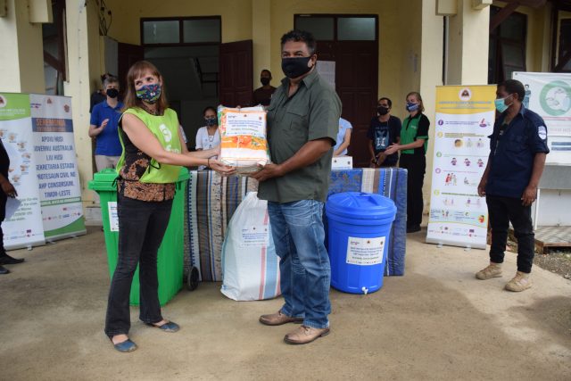 Konsórsiu ONG sira husi Parseria Umanitária Australia nian (AHP – sigla Inglesh) hanesan (CARE Internasional iha Timor-Leste, Caritas Australia, Oxfam, World Vision no Plan International) fornese Kulsaun 100, terpal/lona 100, manta 1000, material dapur nian set 190, pakote hijiene 200, lisu fatin 30, estasaun fase-liman 30, spanduk hamriik nian ho mensazen konaba prevensaun COVID-19 hamutuk 30 no sabaun/sabonetes hamutuk kaixa 15 (2160 unidade mak iha laran) ne’ebe finansia husi governu Australia.