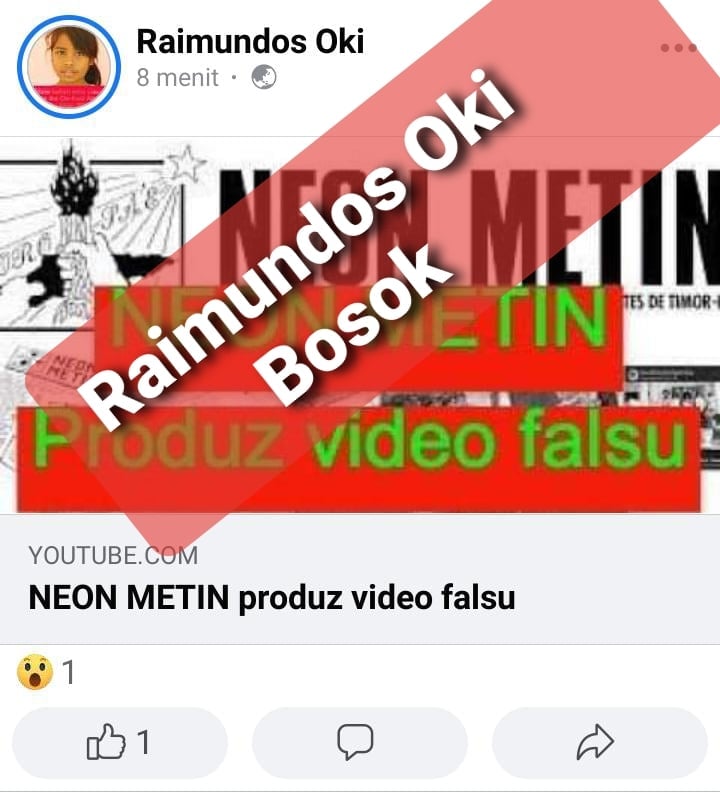 Dala uluk hakarak hatete katak saida mak Raimundus Oki hosi The Oecusse Post fahe iha media sosial kona ba Neon Metin ne’e LA LOS no BOSOK.