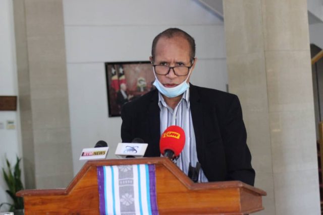 Alcino Barris dehan Prezidente Republika aseita atu hola marka prezensa iha momentu abertura iha Lansamentu ba rezultadu peskiza aktu eleitóral.
