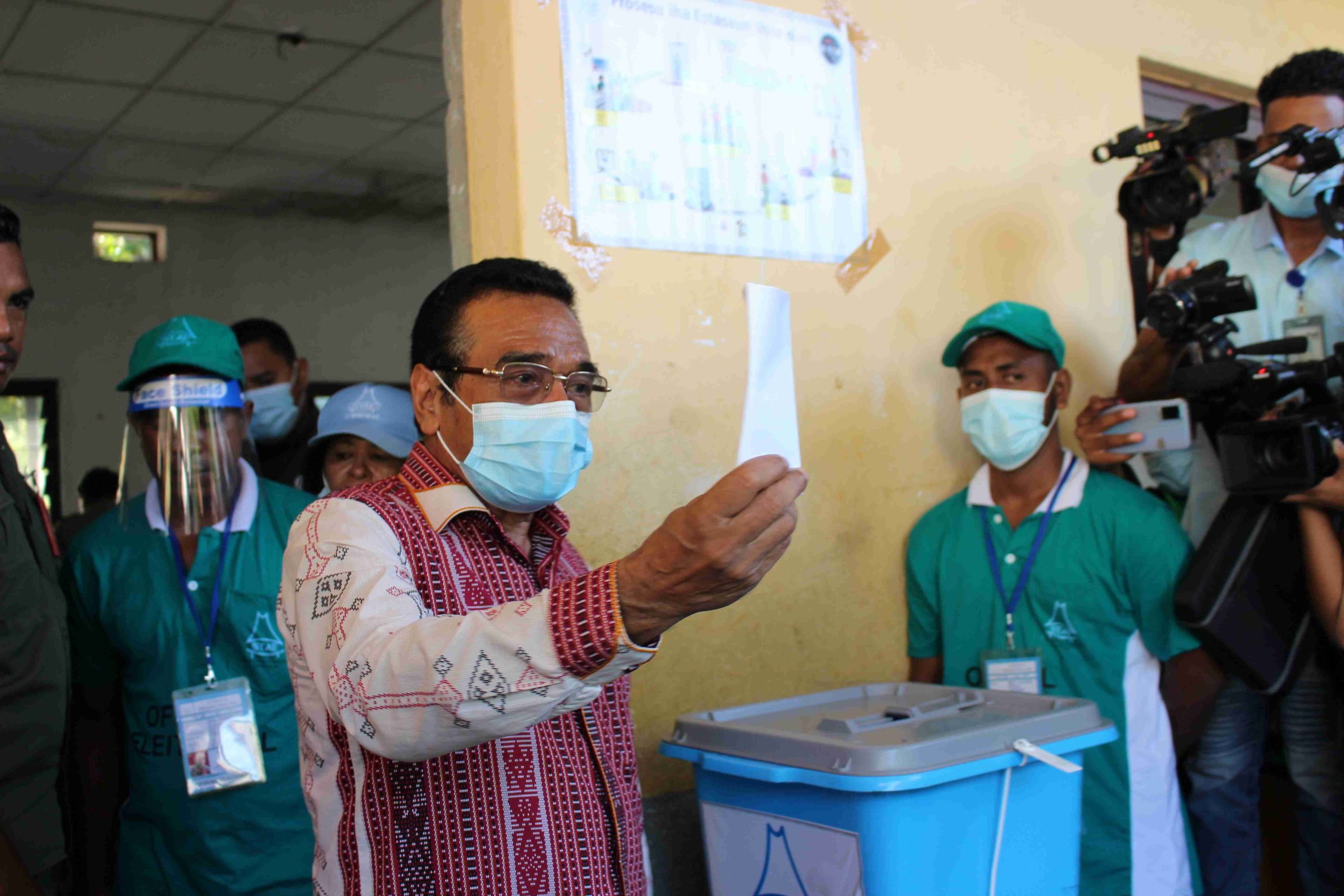 Kandidatu Prezidente ho númeru sorteiu 6, Dr. Francisco Guterres Lu Olo, ezerse ona nia direitu liuhusi eleisaun prezidensiál, iha eskola primária Farol, Dili.