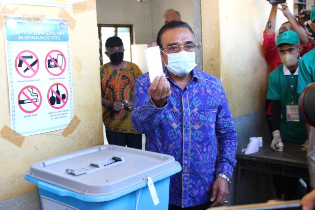 Kandidatu Prezidente Republika, Dr. Francisco Guterres Lu Olo ezerse ona nia votu iha sentru votasaun eskola Farol, iha oras tuku 8.30 dader, depois de vota ba jornalista sira nia Lu Olo hateten sei garante nafatin estabilidade no paz