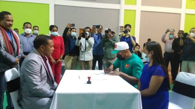 SEFOPE ho ekipa traballudor asina deklarasaun antes ba Korea. [Foto: David | 06.05.2022]