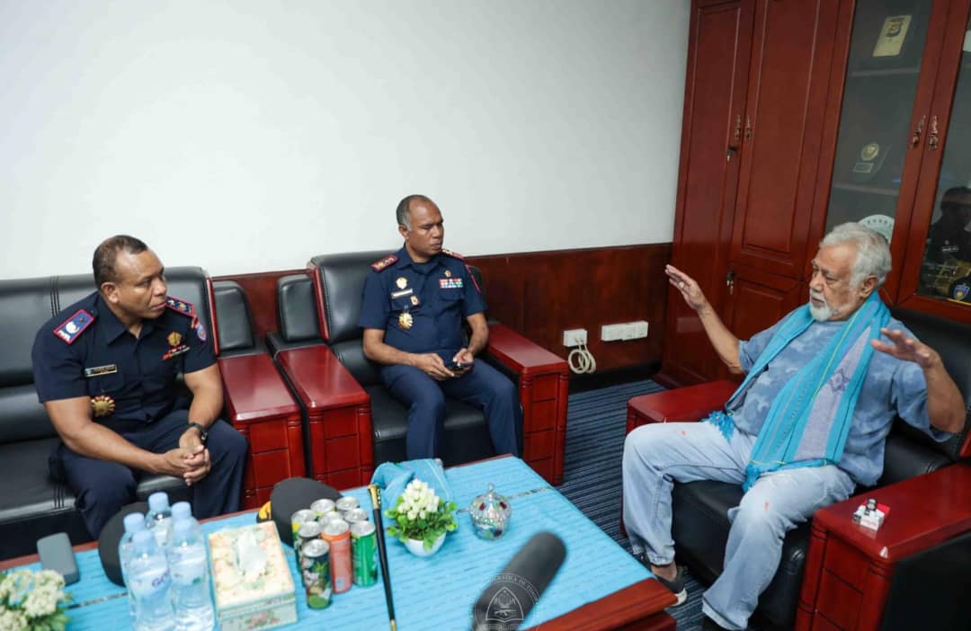 Primeiru-Ministru, Kay Rala Xanana Gusmão hala’o reniaun ho Komandante Jerál Polísia Nasionál Timor-Leste (PNTL), Komisariu Jerál Polisia, Henrique da Costa no Segundu Komandante Jerál PNTL, Komisariu Polísia Pedro Belo, (Foto Media PM)