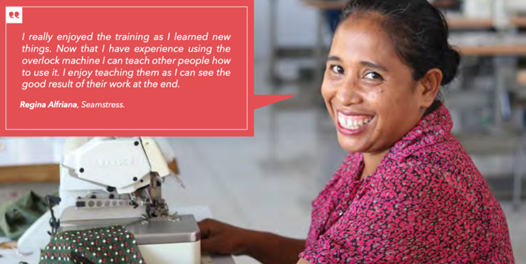 Figura 4. Kompañia Mahanaim nia ezemplar ropa produz husi husi tais print. Photo husi : Mahanain nia pajina Instagram