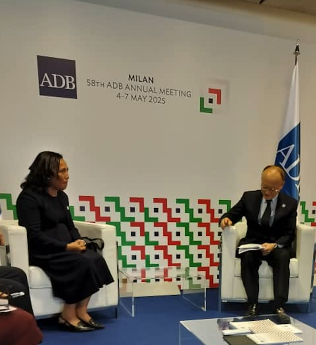 Ministra Finansas Timor-Leste, Santina Jose Rodrigues Ferreira ho Ministru Planeamentu no Investementu Estratejiku, Gastao Fransico de Sousa halo enkontru bilateral ho Presidente Banku Dezenvolvimentu Aziatiku ka Asian Development Bank (ADB), Masato Kanda. Enkontru ne’e halao iha momentu Enkontru Annual Banku Dezenvolvimentu Asiatiku 2025, iha sidade Milan, Italia, ohin, hodi koalia kona ba apoio finansiamentu ADB nian ba projetu estratejiku sira, inklui imprestimu ka debe ba implementasaun projetu estratejiku sira.