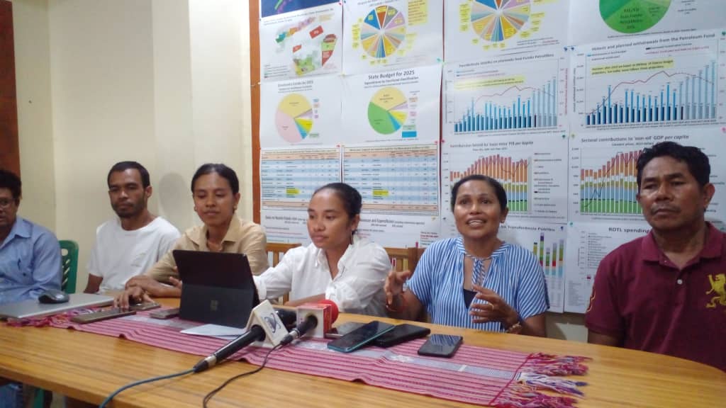 Ekipa Lao Hamutuk halo konferensia imprensa konaba OJE 2026. [Foto: Silvino]